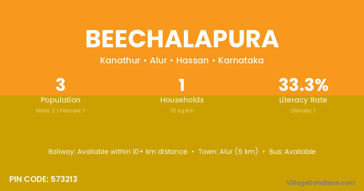 Beechalapura village has a total population of 3 people, of which 2 are males and 1 are females.