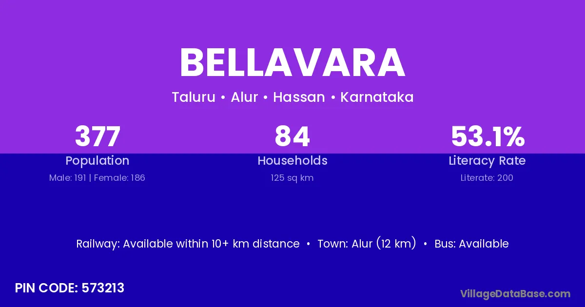 Alur (12 km) is the nearest town to Bellavara village for major economic activities and is located approximately 12 km away.