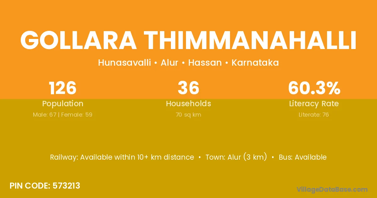 Gollara Thimmanahalli village has a total population of 126 people, of which 67 are males and 59 are females.