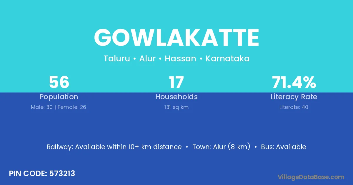 According to Census 2011 information, the village code of Gowlakatte village is 573213.