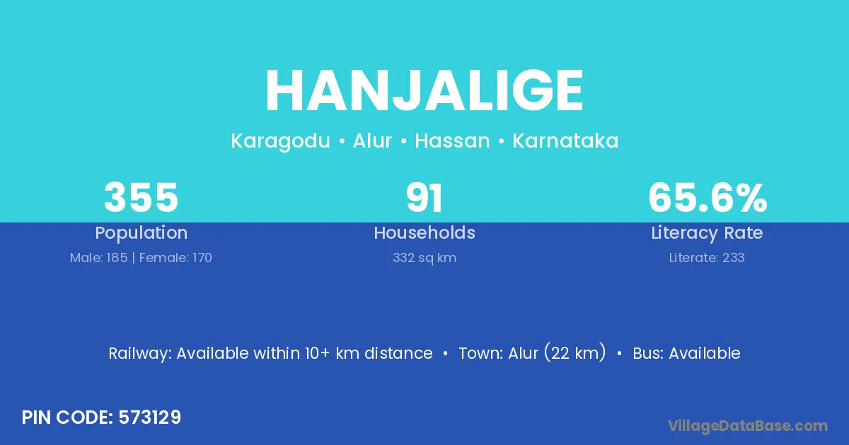 Hanjalige village has a total population of 355 people, of which 185 are males and 170 are females.