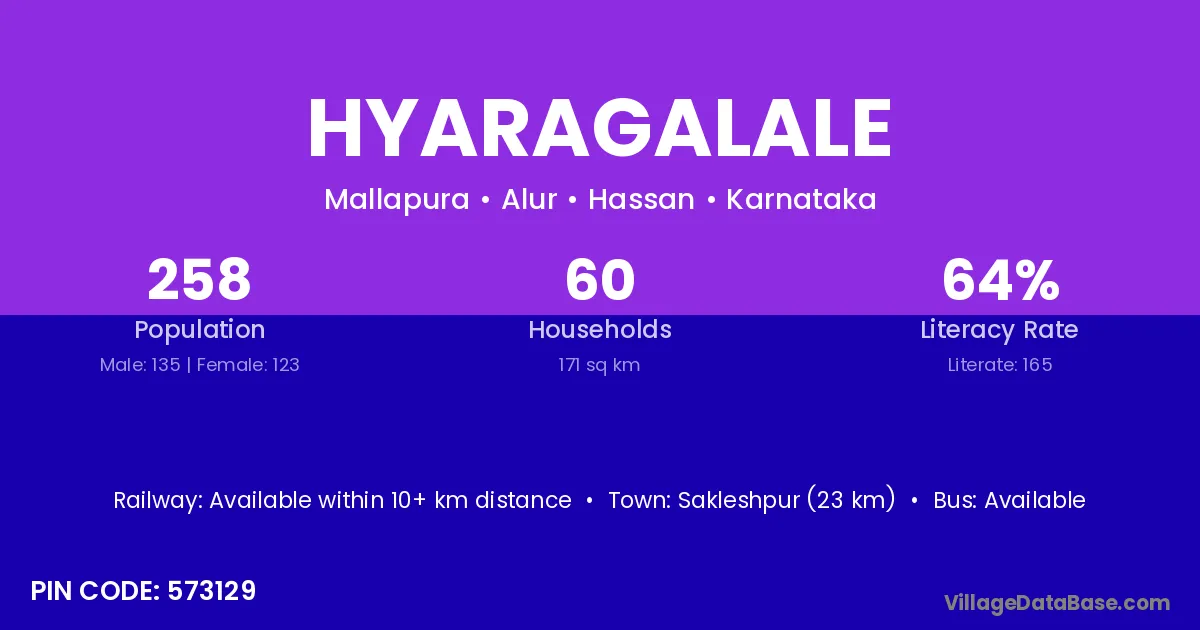 Hyaragalale village has a total population of 258 people, of which 135 are males and 123 are females.