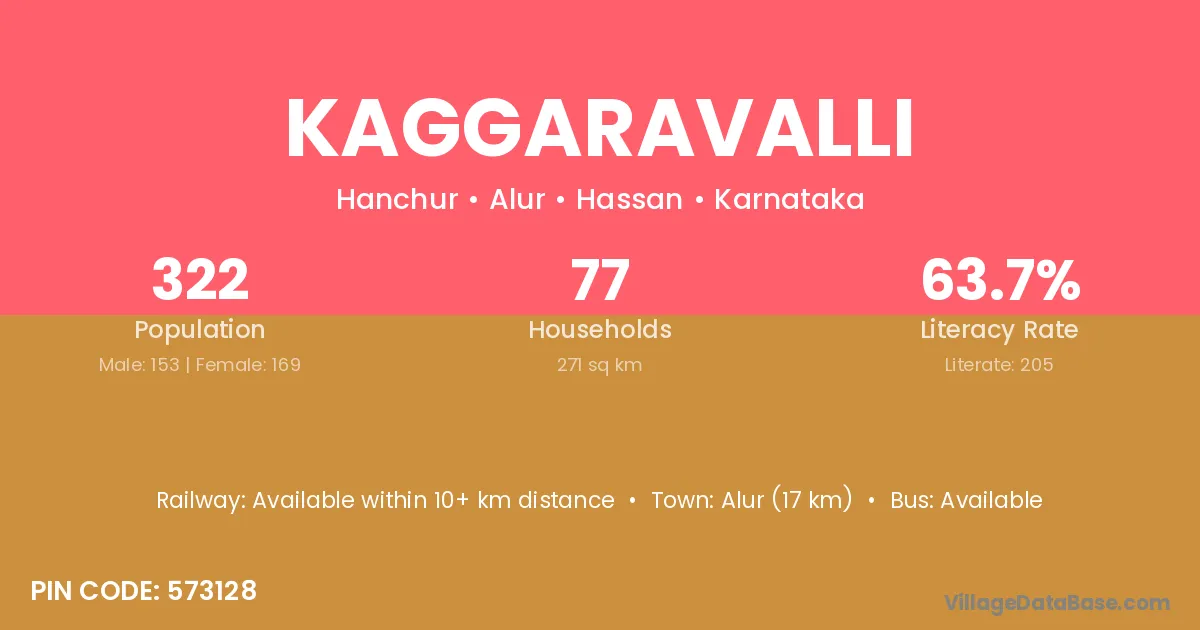 Alur (17 km) is the nearest town to Kaggaravalli village for major economic activities and is located approximately 17 km away.