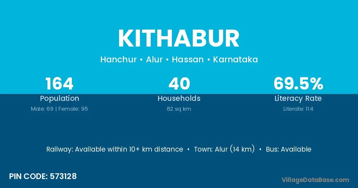 According to Census 2011 information, the village code of Kithabur village is 573128.