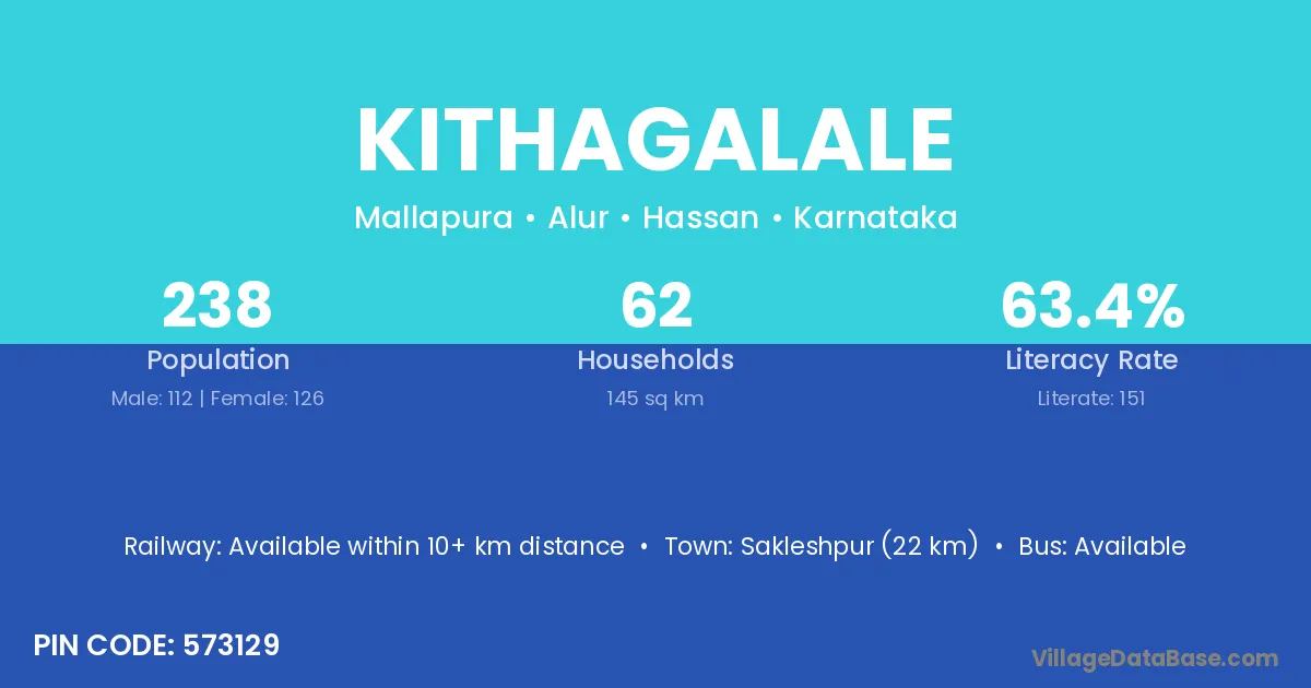 Sakleshpur (22 km) is the nearest town to Kithagalale village for major economic activities and is located approximately 22 km away.