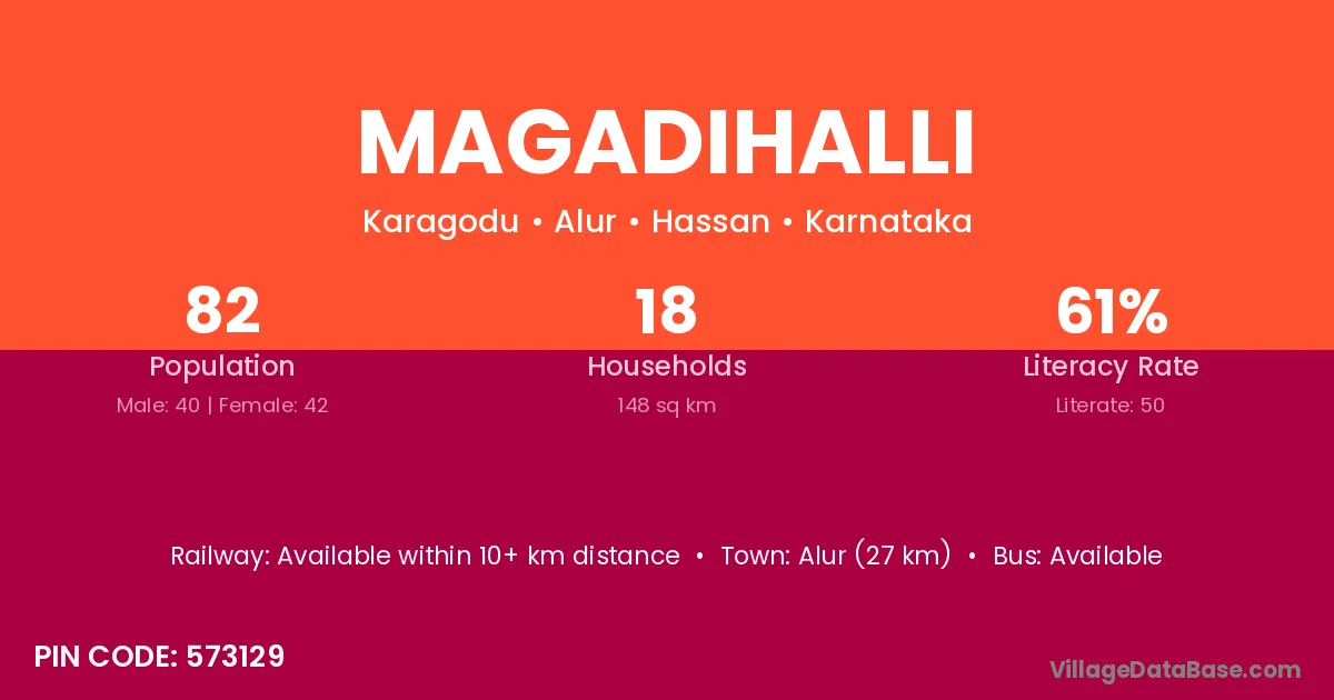 Magadihalli village has a total population of 82 people, of which 40 are males and 42 are females.