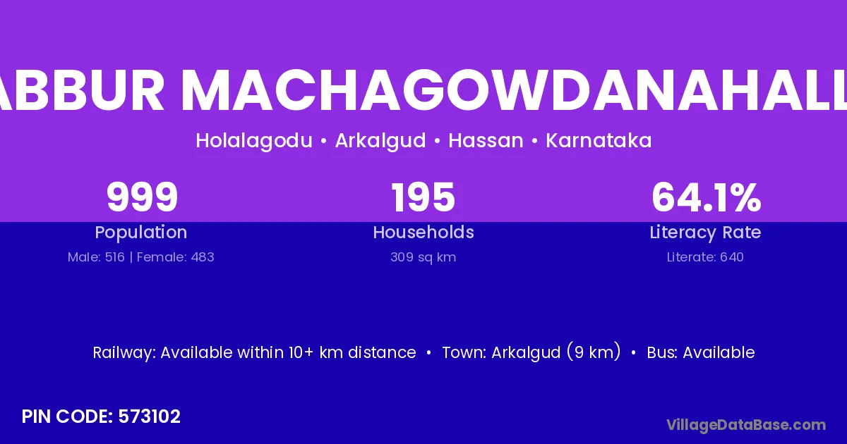 Abbur Machagowdanahalli village has a total population of 999 people, of which 516 are males and 483 are females.