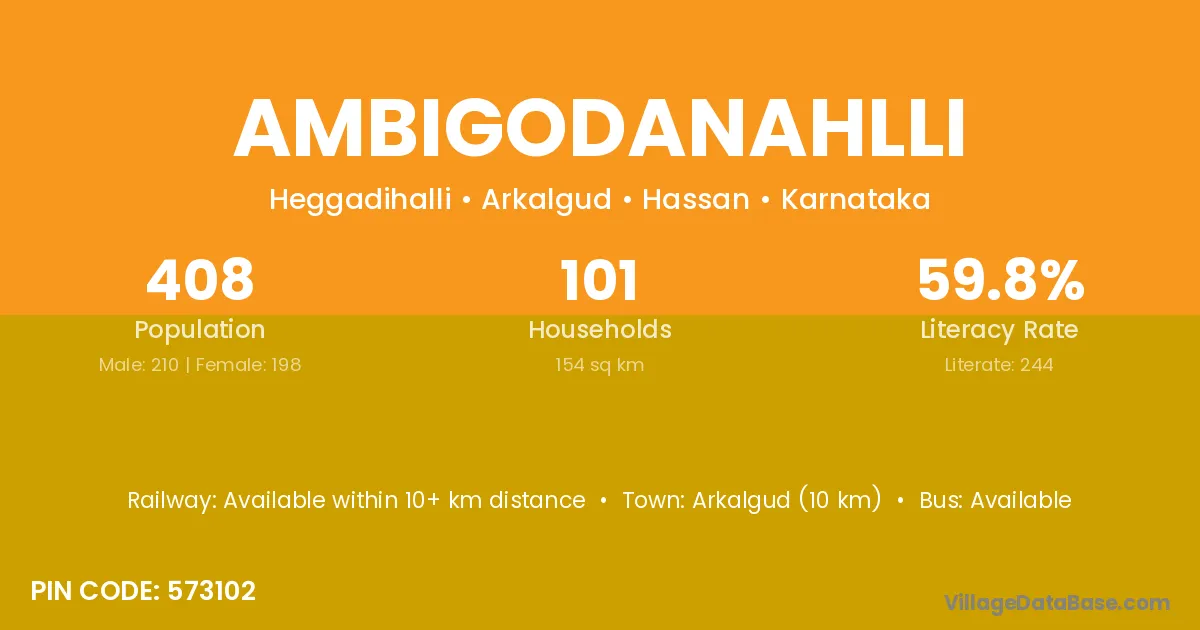 Arkalgud (10 km) is the nearest town to Ambigodanahlli village for major economic activities and is located approximately 10 km away.