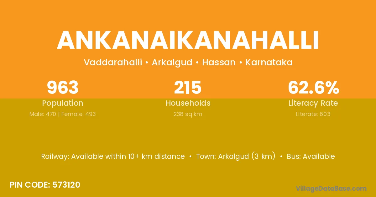 Arkalgud (3 km) is the nearest town to Ankanaikanahalli village for major economic activities and is located approximately 3 km away.