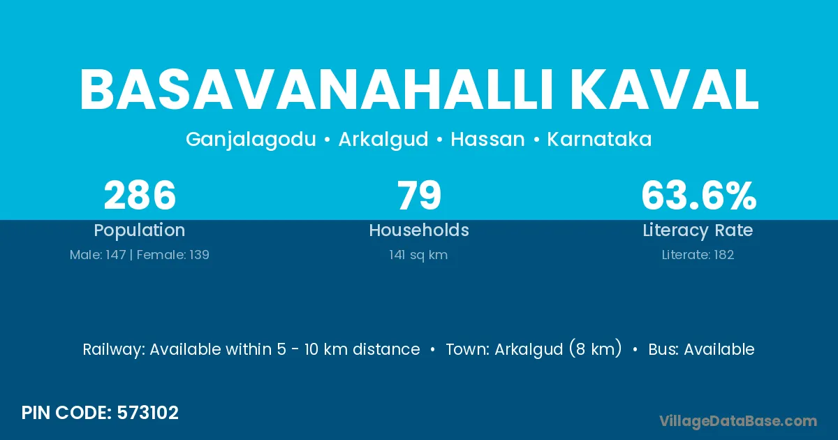 Basavanahalli Kaval village has a total population of 286 people, of which 147 are males and 139 are females.