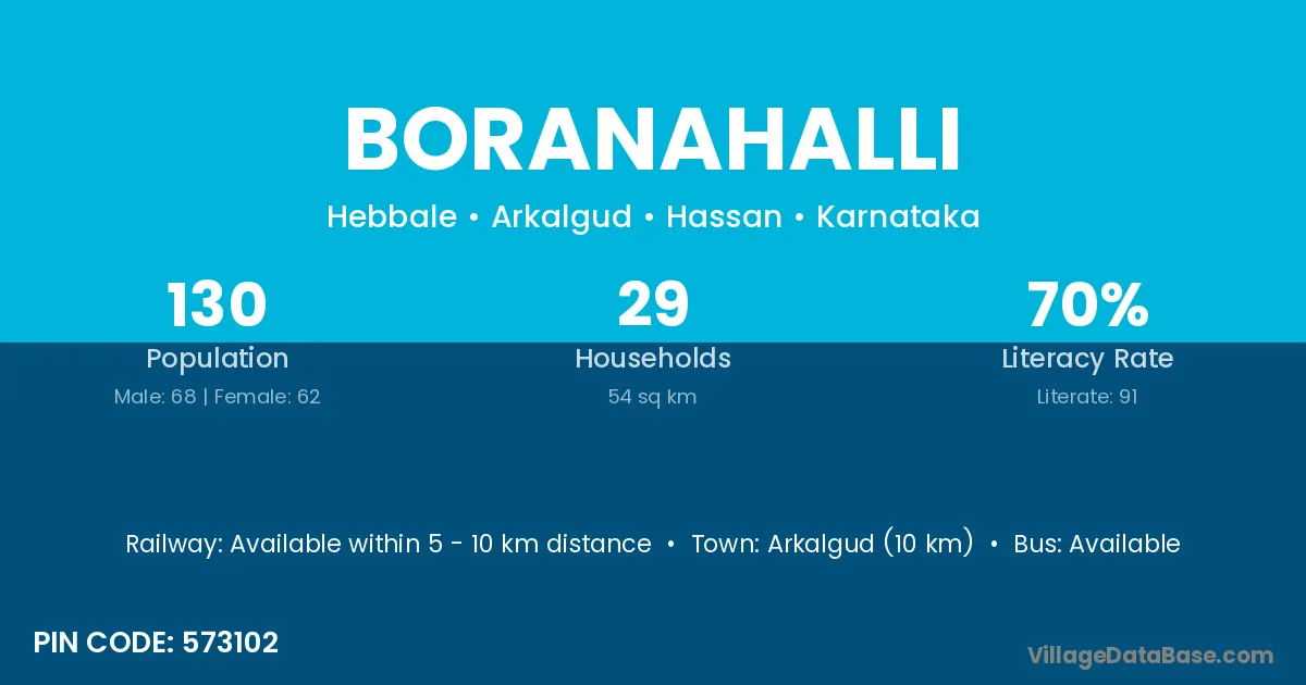 Arkalgud (10 km) is the nearest town to Boranahalli village for major economic activities and is located approximately 10 km away.