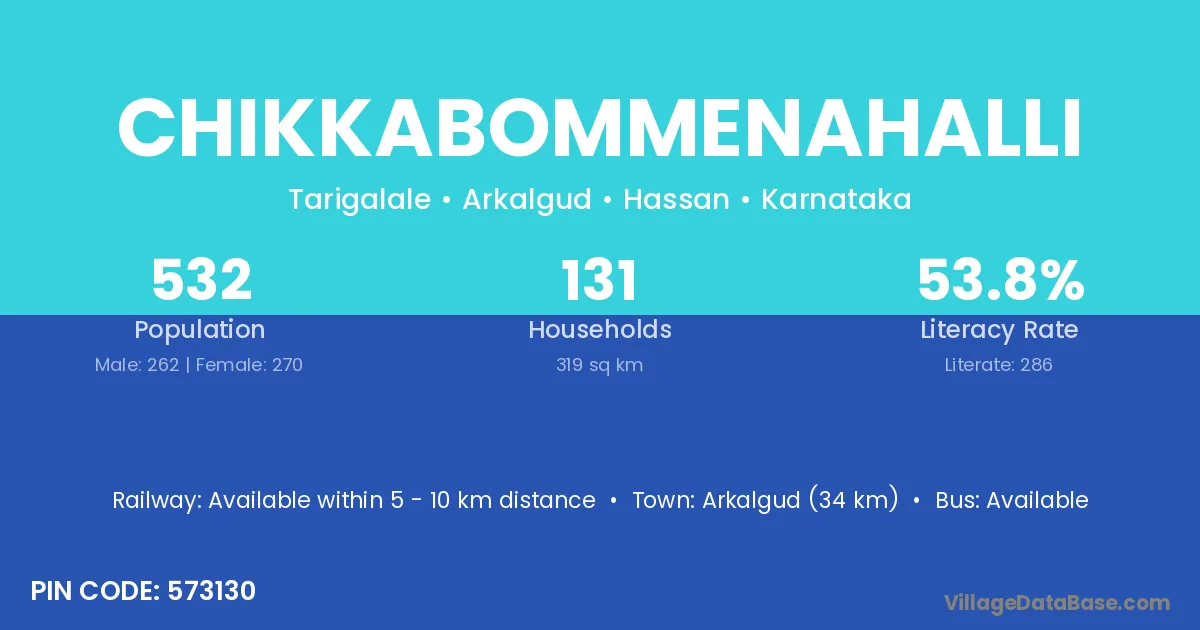 Chikkabommenahalli village has a total population of 532 people, of which 262 are males and 270 are females.