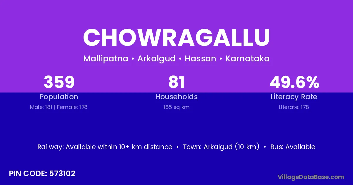 Arkalgud (10 km) is the nearest town to Chowragallu village for major economic activities and is located approximately 10 km away.