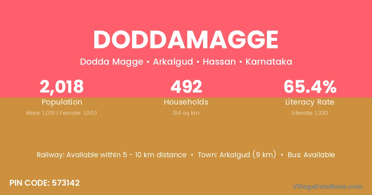 Arkalgud (9 km) is the nearest town to Doddamagge village for major economic activities and is located approximately 9 km away.