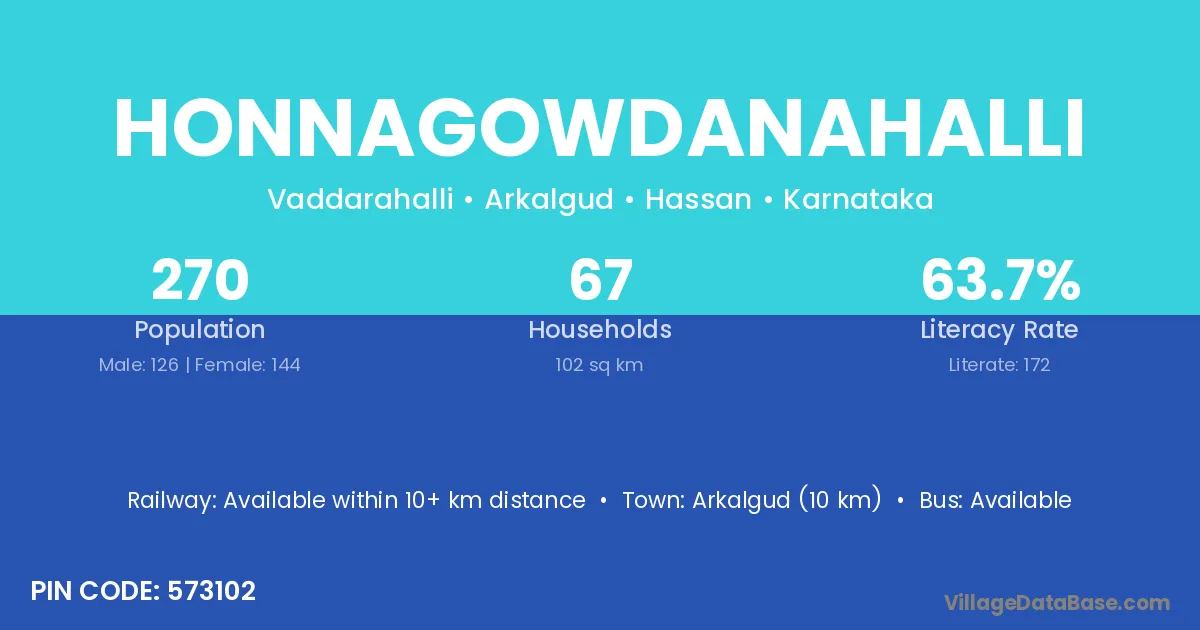 Arkalgud (10 km) is the nearest town to Honnagowdanahalli village for major economic activities and is located approximately 10 km away.