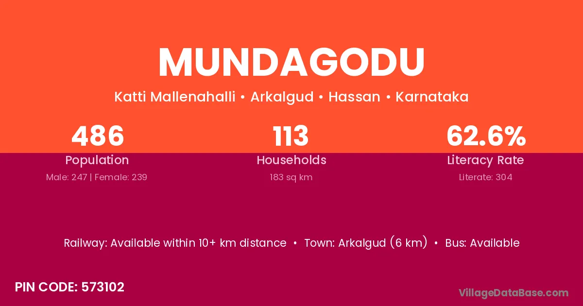 Mundagodu village has a total population of 486 people, of which 247 are males and 239 are females.
