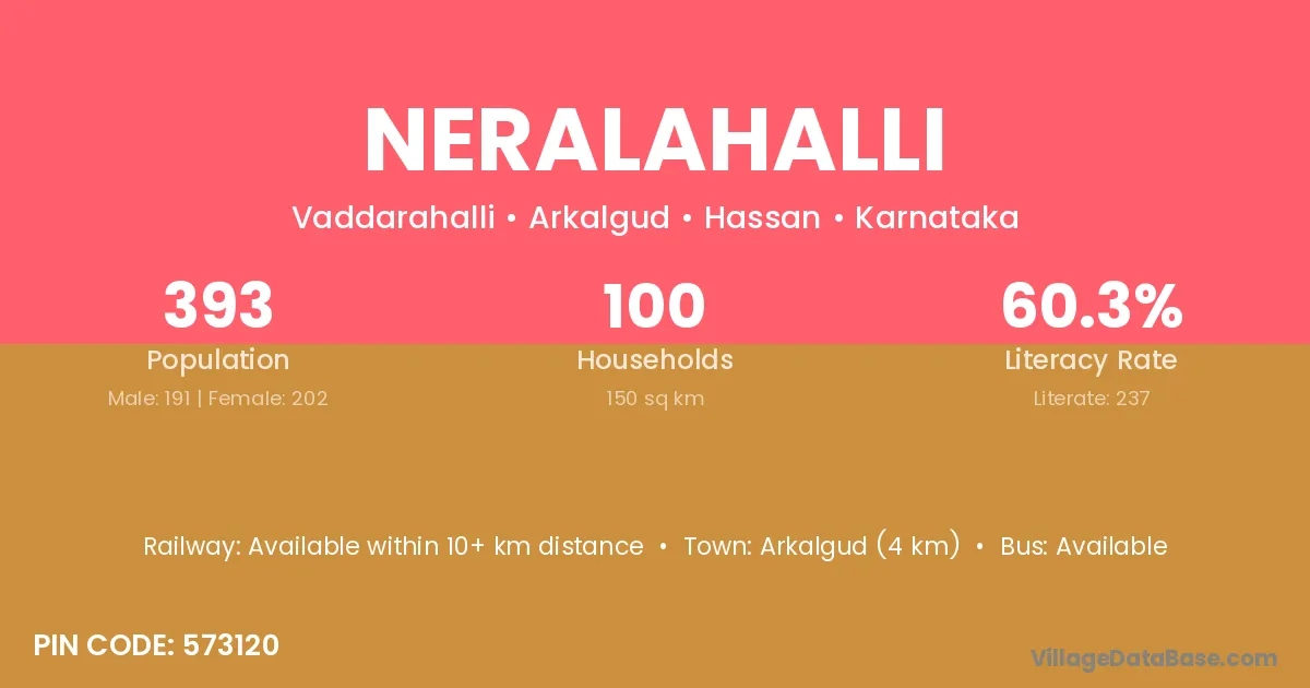 Arkalgud (4 km) is the nearest town to Neralahalli village for major economic activities and is located approximately 4 km away.