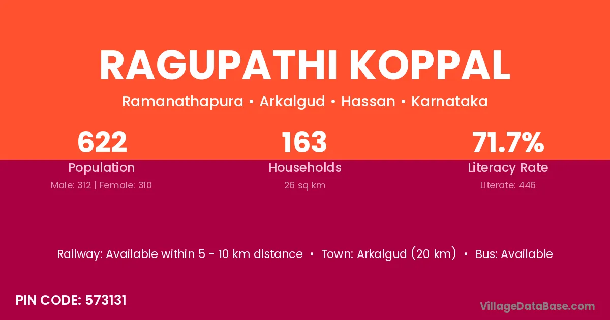 Ragupathi Koppal village has a total population of 622 people, of which 312 are males and 310 are females.