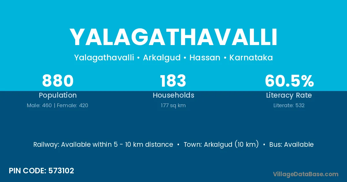 Arkalgud (10 km) is the nearest town to Yalagathavalli village for major economic activities and is located approximately 10 km away.
