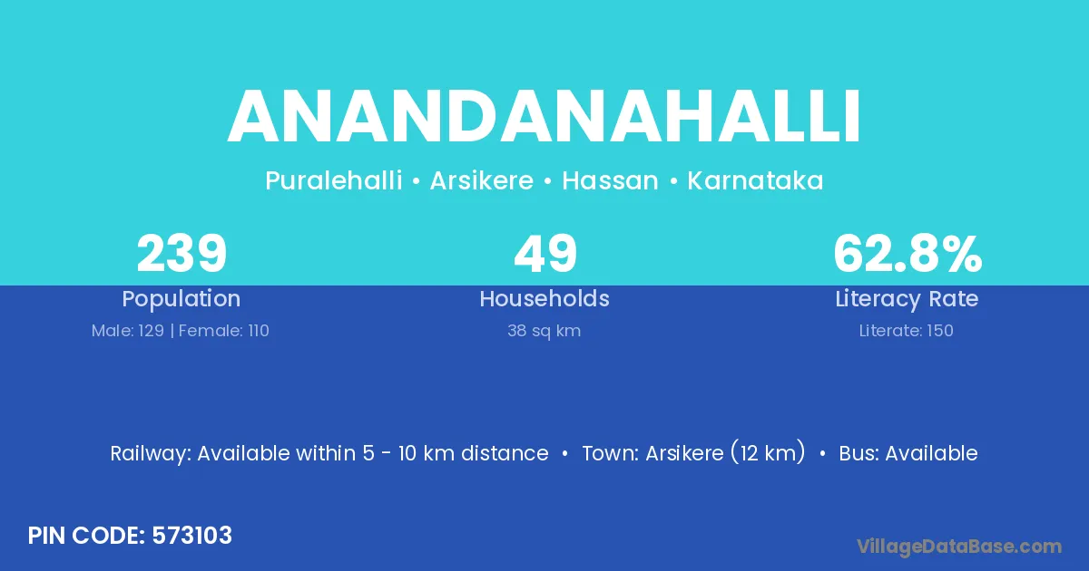 Arsikere (12 km) is the nearest town to Anandanahalli village for major economic activities and is located approximately 12 km away.