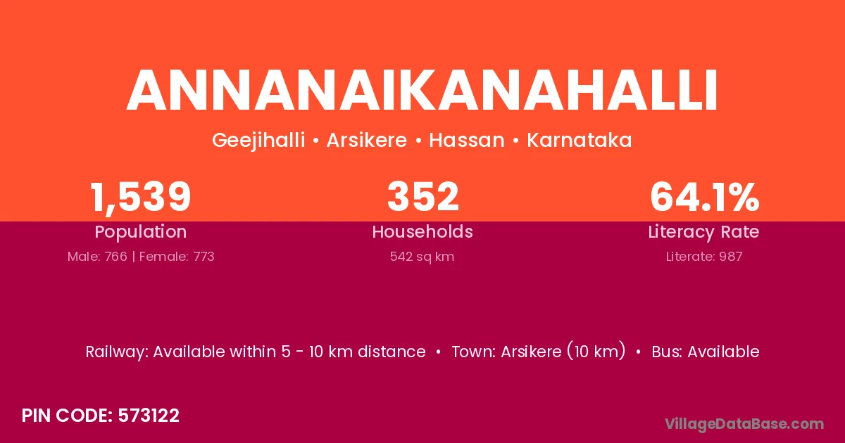 Annanaikanahalli village has a total population of 1,539 people, of which 766 are males and 773 are females.
