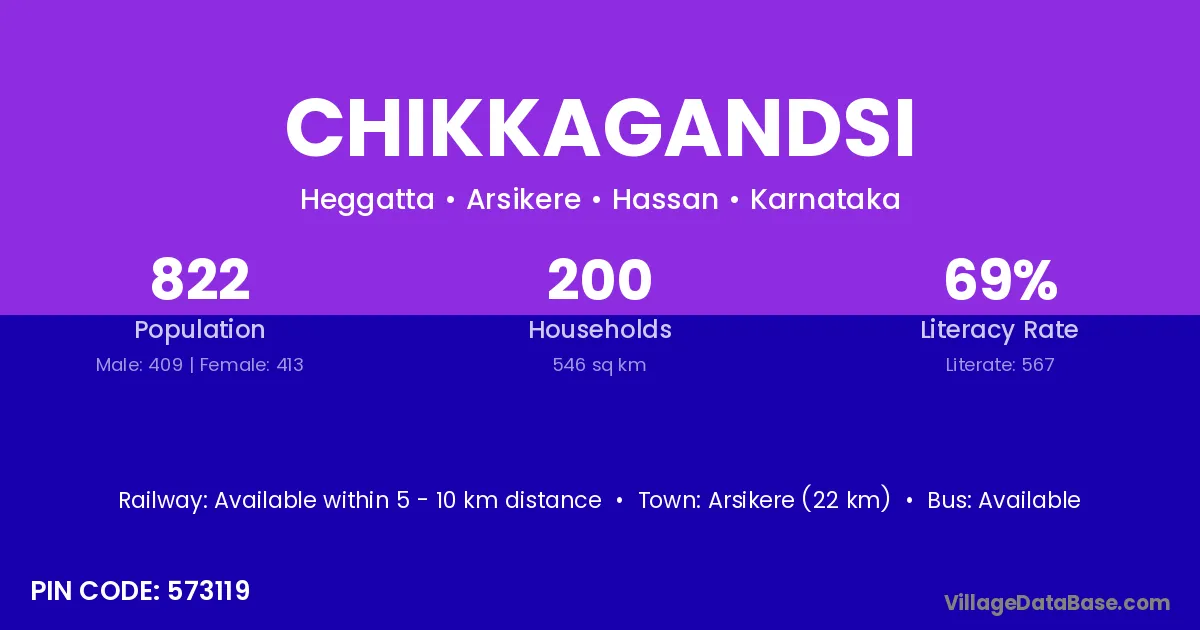 Arsikere (22 km) is the nearest town to Chikkagandsi village for major economic activities and is located approximately 22 km away.