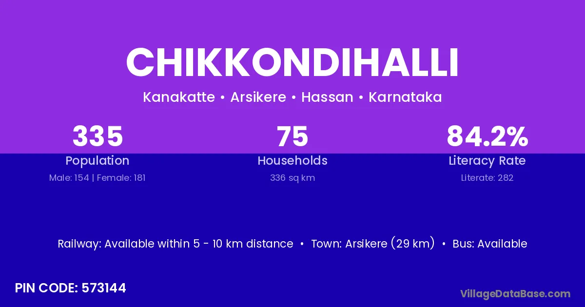 Chikkondihalli village has a total population of 335 people, of which 154 are males and 181 are females.