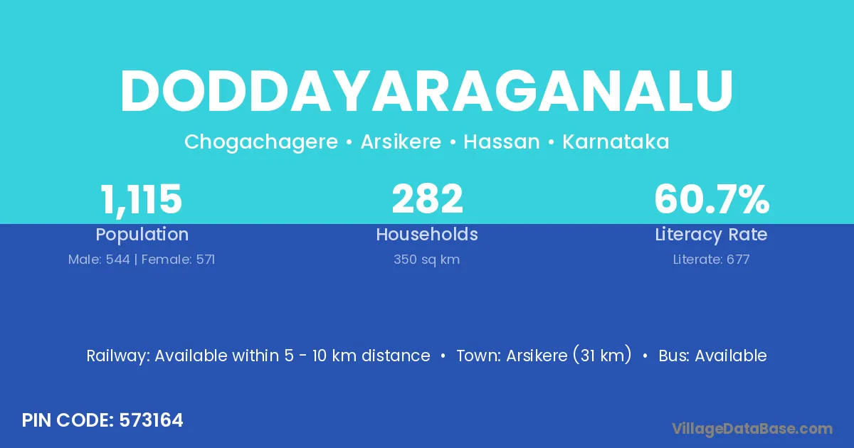 Arsikere (31 km) is the nearest town to Doddayaraganalu village for major economic activities and is located approximately 31 km away.