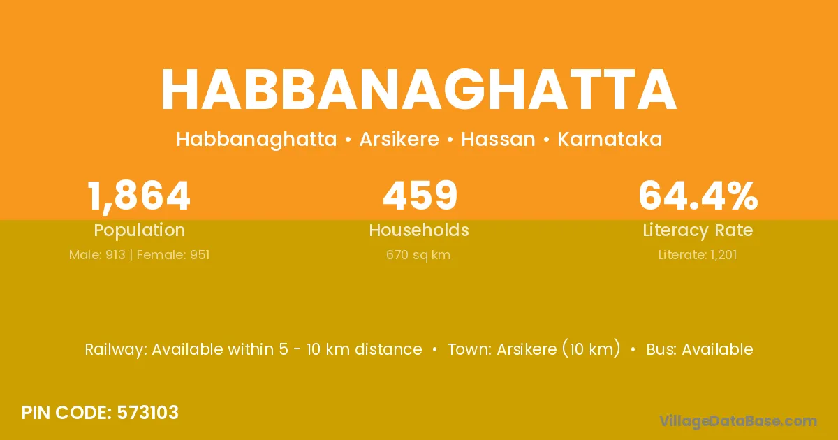 Arsikere (10 km) is the nearest town to Habbanaghatta village for major economic activities and is located approximately 10 km away.