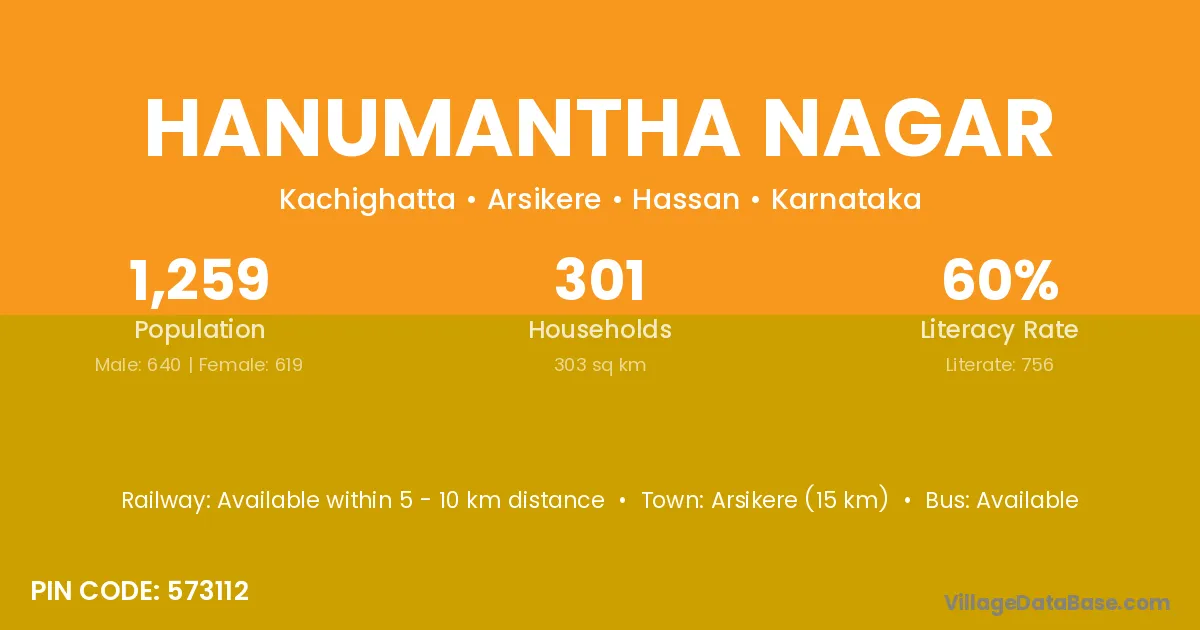 Hanumantha Nagar village has a total population of 1,259 people, of which 640 are males and 619 are females.