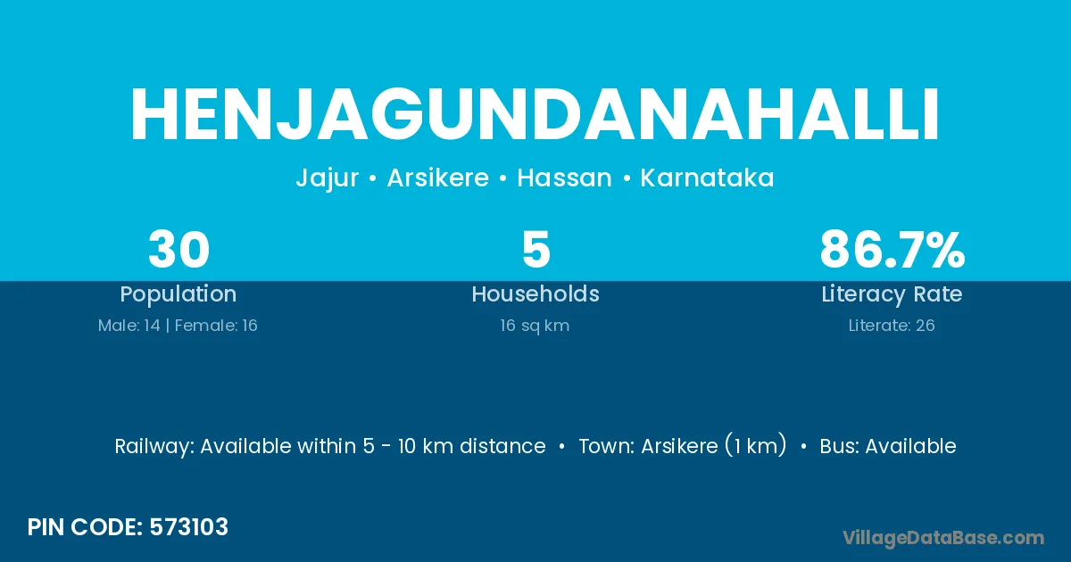 Arsikere (1 km) is the nearest town to Henjagundanahalli village for major economic activities and is located approximately 1 km away.