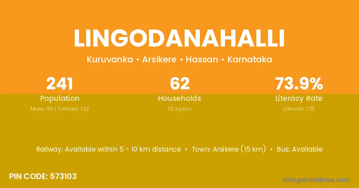 Arsikere (15 km) is the nearest town to Lingodanahalli village for major economic activities and is located approximately 15 km away.