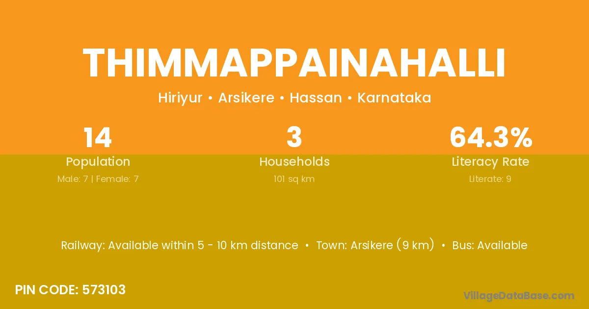 Arsikere (9 km) is the nearest town to Thimmappainahalli village for major economic activities and is located approximately 9 km away.