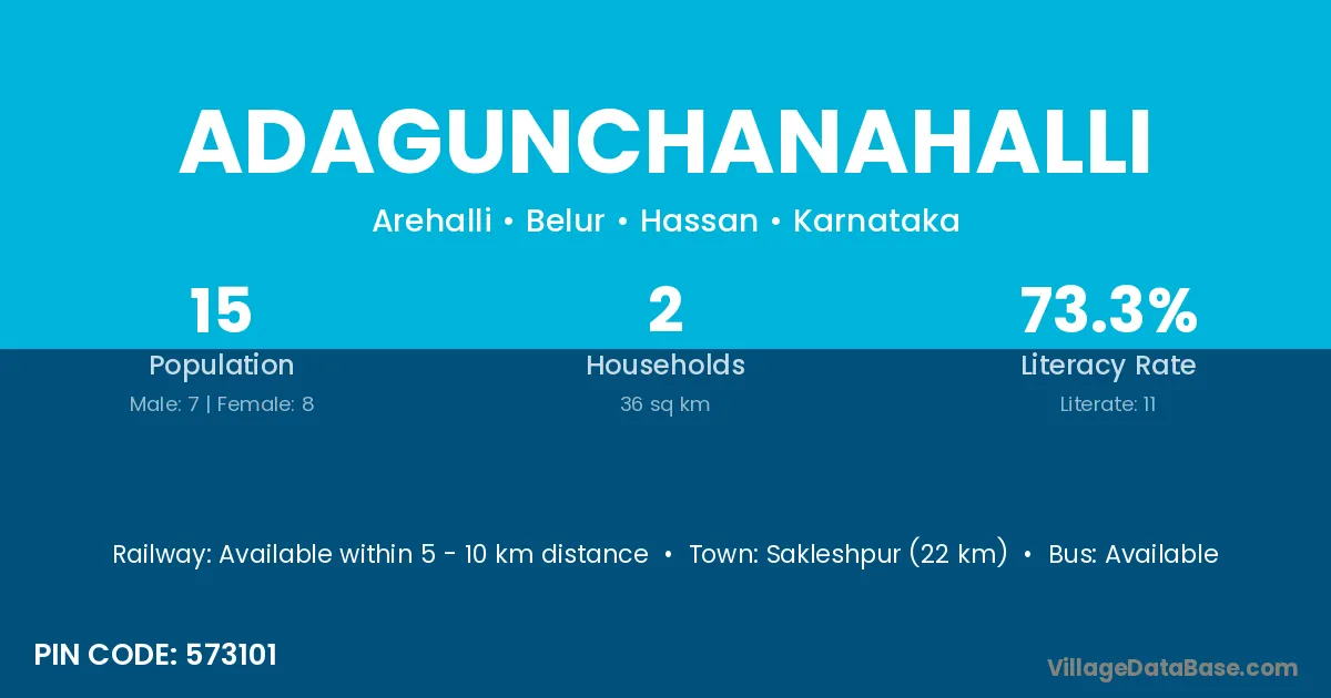 Adagunchanahalli village has a total population of 15 people, of which 7 are males and 8 are females.