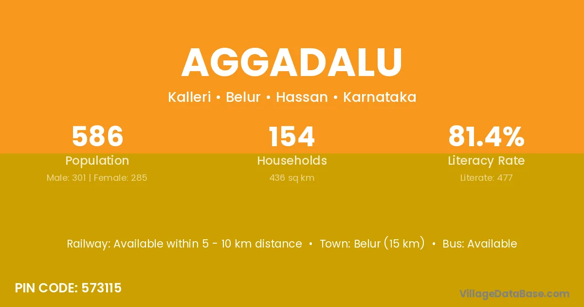 Belur (15 km) is the nearest town to Aggadalu village for major economic activities and is located approximately 15 km away.