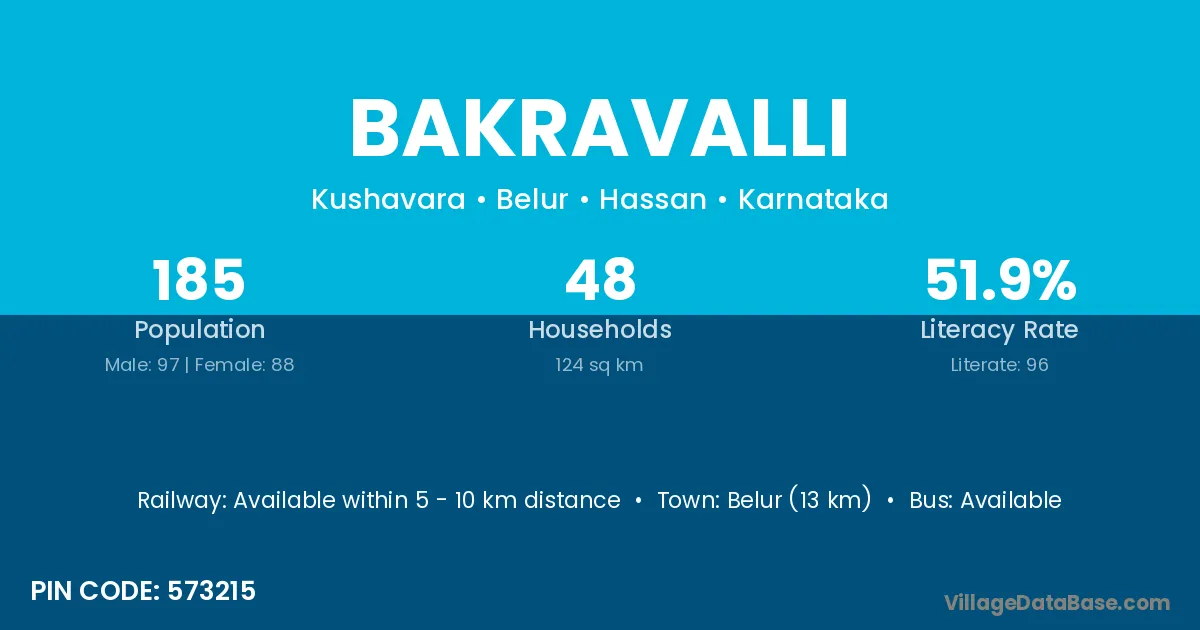 Belur (13 km) is the nearest town to Bakravalli village for major economic activities and is located approximately 13 km away.