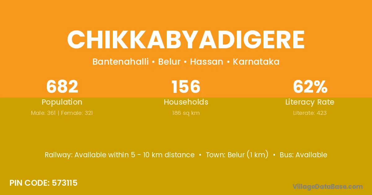 Belur (1 km) is the nearest town to Chikkabyadigere village for major economic activities and is located approximately 1 km away.