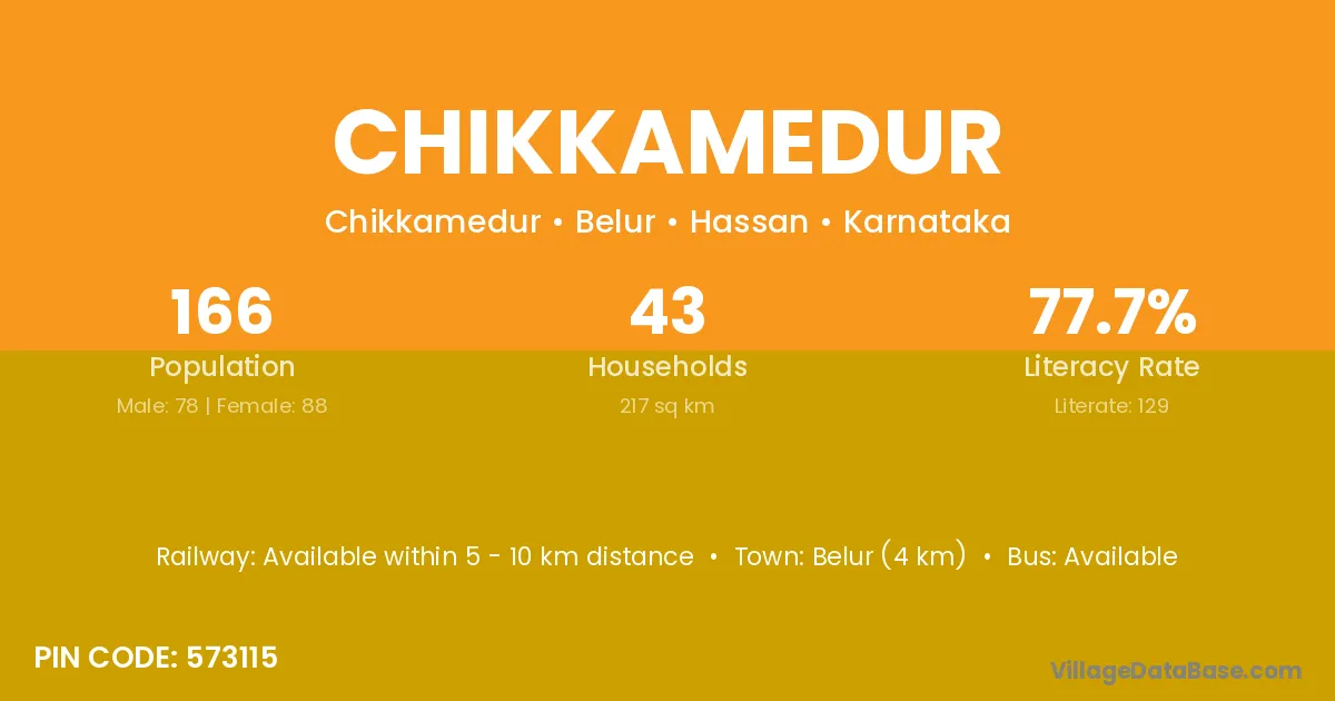 Belur (4 km) is the nearest town to Chikkamedur village for major economic activities and is located approximately 4 km away.