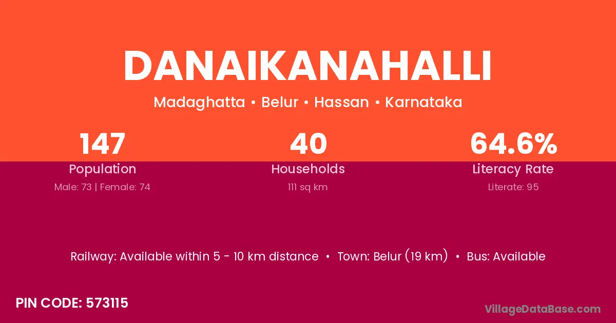 Belur (19 km) is the nearest town to Danaikanahalli village for major economic activities and is located approximately 19 km away.