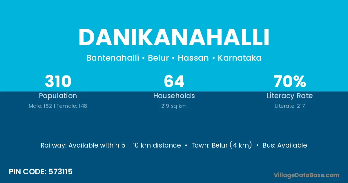 Belur (4 km) is the nearest town to Danikanahalli village for major economic activities and is located approximately 4 km away.