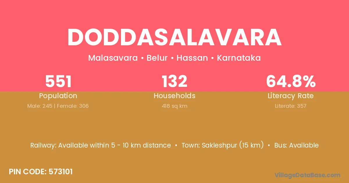 Doddasalavara village has a total population of 551 people, of which 245 are males and 306 are females.