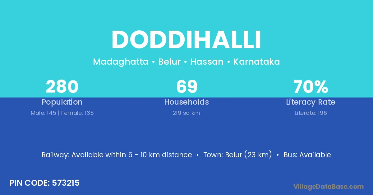 Belur (23 km) is the nearest town to Doddihalli village for major economic activities and is located approximately 23 km away.