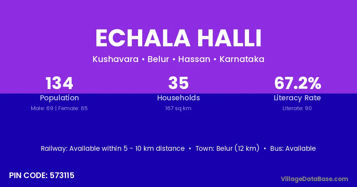 Belur (12 km) is the nearest town to Echala Halli village for major economic activities and is located approximately 12 km away.