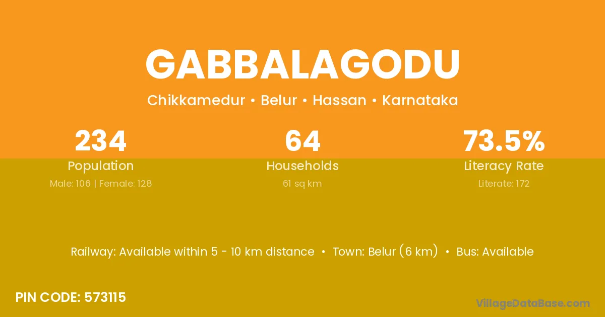 Gabbalagodu village has a total population of 234 people, of which 106 are males and 128 are females.