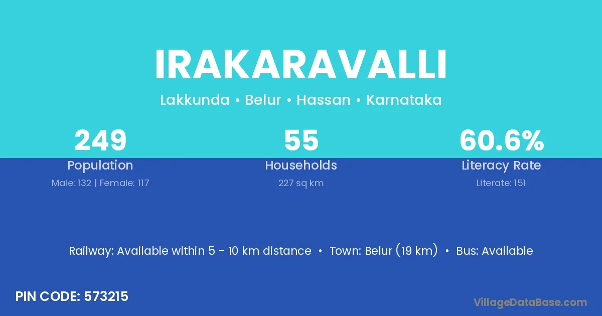 Belur (19 km) is the nearest town to Irakaravalli village for major economic activities and is located approximately 19 km away.