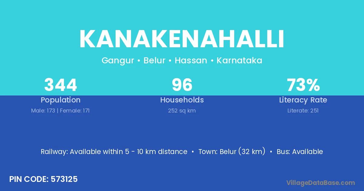 Kanakenahalli village has a total population of 344 people, of which 173 are males and 171 are females.