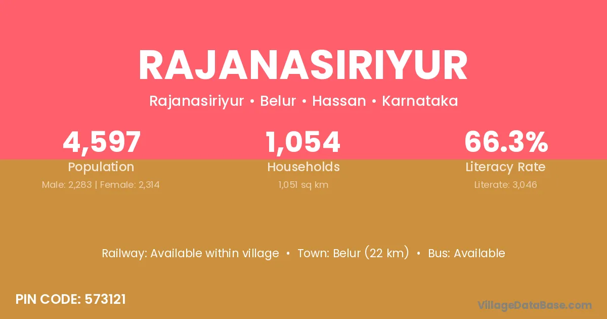 Belur (22 km) is the nearest town to Rajanasiriyur village for major economic activities and is located approximately 22 km away.