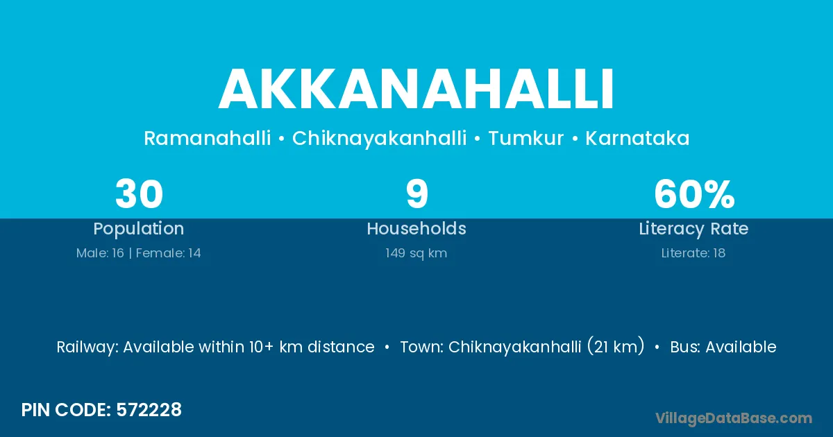 Channarayapatna (28 km) is the nearest town to Akkanahalli village for major economic activities and is located approximately 28 km away.