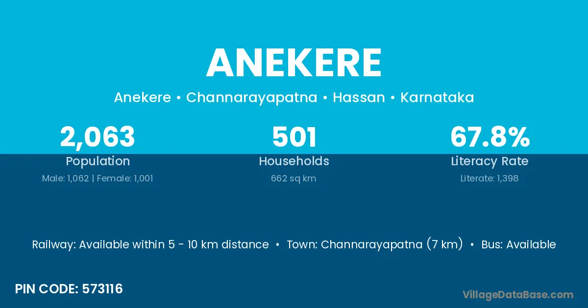 Channarayapatna (7 km) is the nearest town to Anekere village for major economic activities and is located approximately 7 km away.