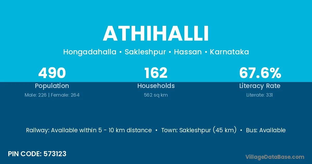 Athihalli village has a total population of 943 people, of which 444 are males and 499 are females.